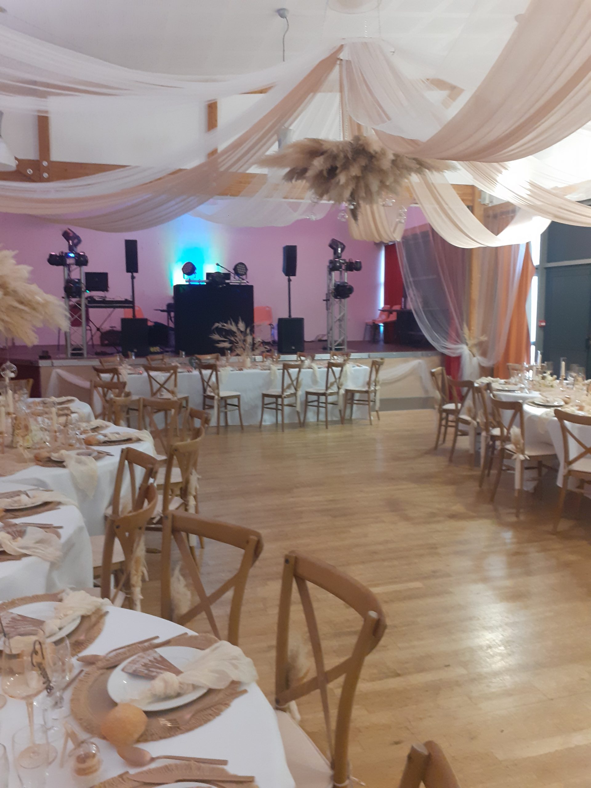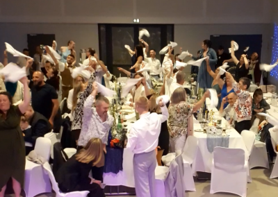 Ambiance musicale adaptée au moment, coordination des jeux avec le traiteur et les témoins, gestion des discours et animations prévues avec vous à l’avance. Soirée dansante :