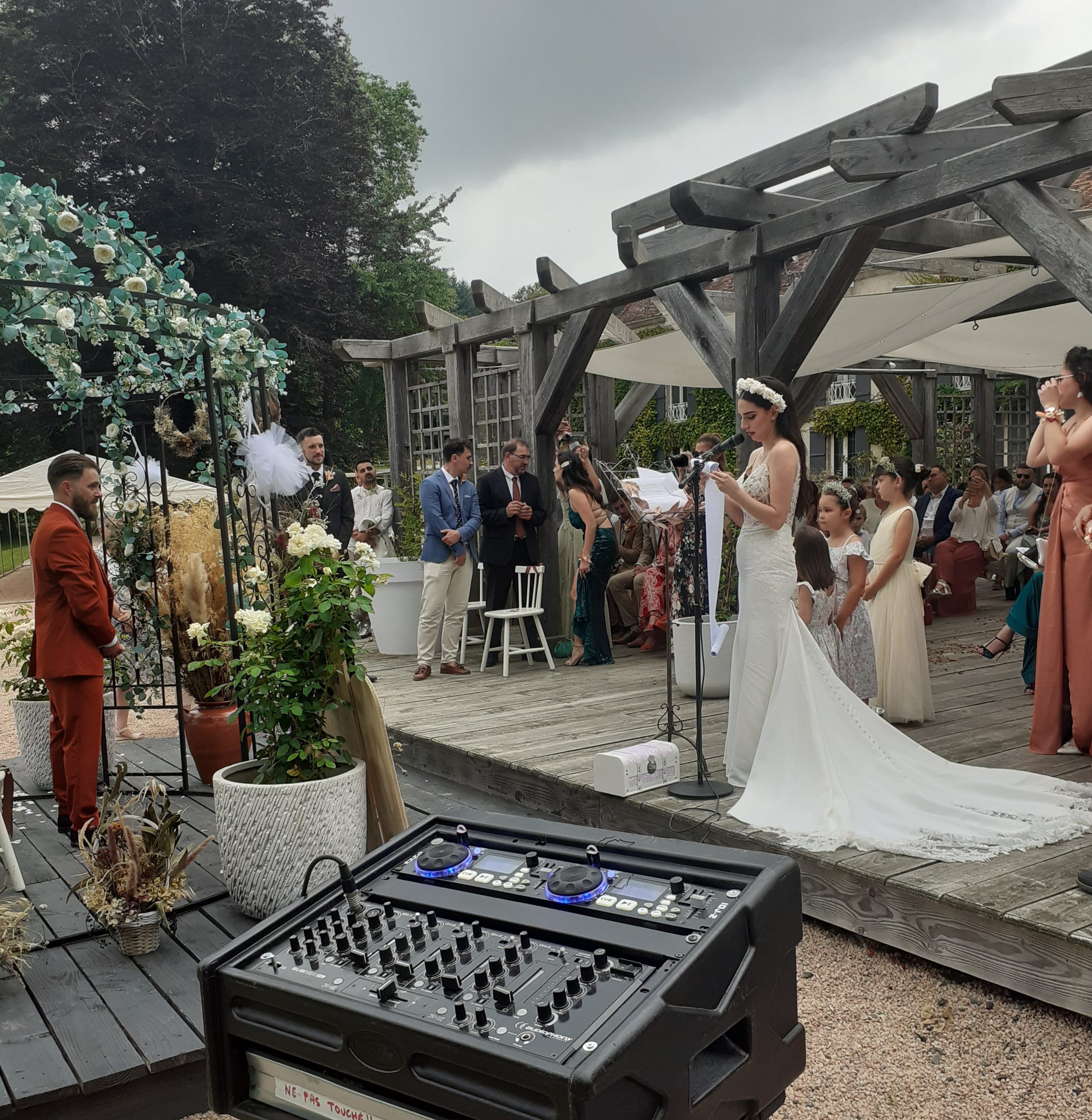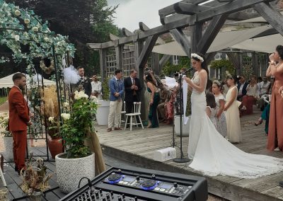 En plus de l’animation complète de votre soirée, ce pack inclut la sonorisation et l’accompagnement musical de votre cérémonie laïque pour en faire un moment unique et chargé d’émotion. /Installation dédiée sur le lieu de la cérémonie (extérieur ou intérieur) / Système de sonorisation indépendant pour garantir une qualité audio optimale / Micro HF pour l’officiant et les intervenants / Mise en musique des temps forts : entrée des mariés, rituels, échanges de vœux, sortie des mariés / Ambiance musicale discrète avant et après la cérémonie / Mise en place d’une playlist personnalisé / Coordination avec l’officiant pour un déroulement fluide et sans imprévus.